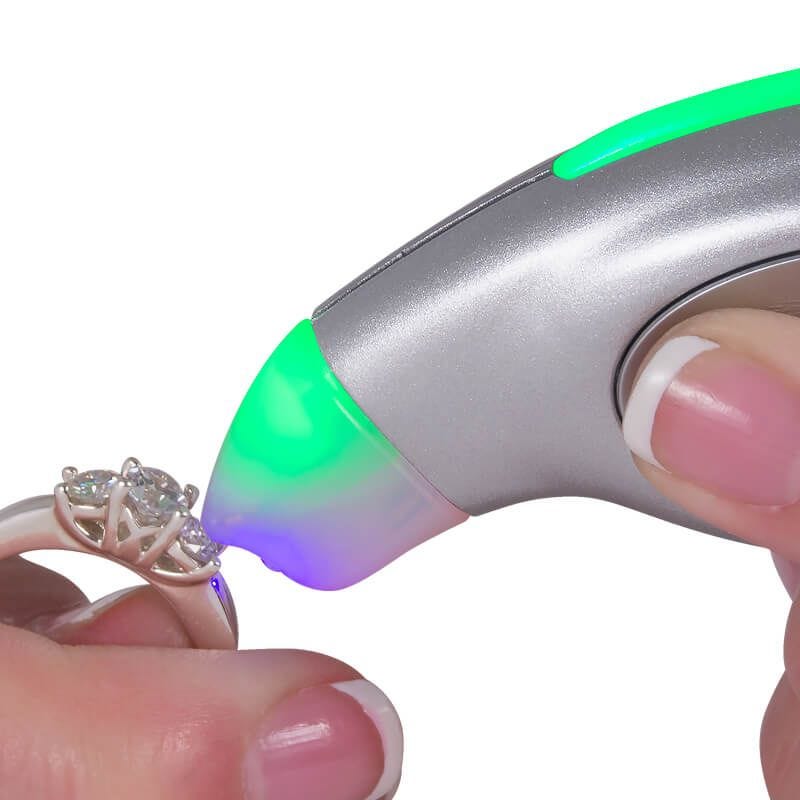 - Glowing light bar / probe tip cone for quick stone identification GREEN = Diamond, BLUE = Moissanite, PINK = Sapphire and RED = Metal Alert