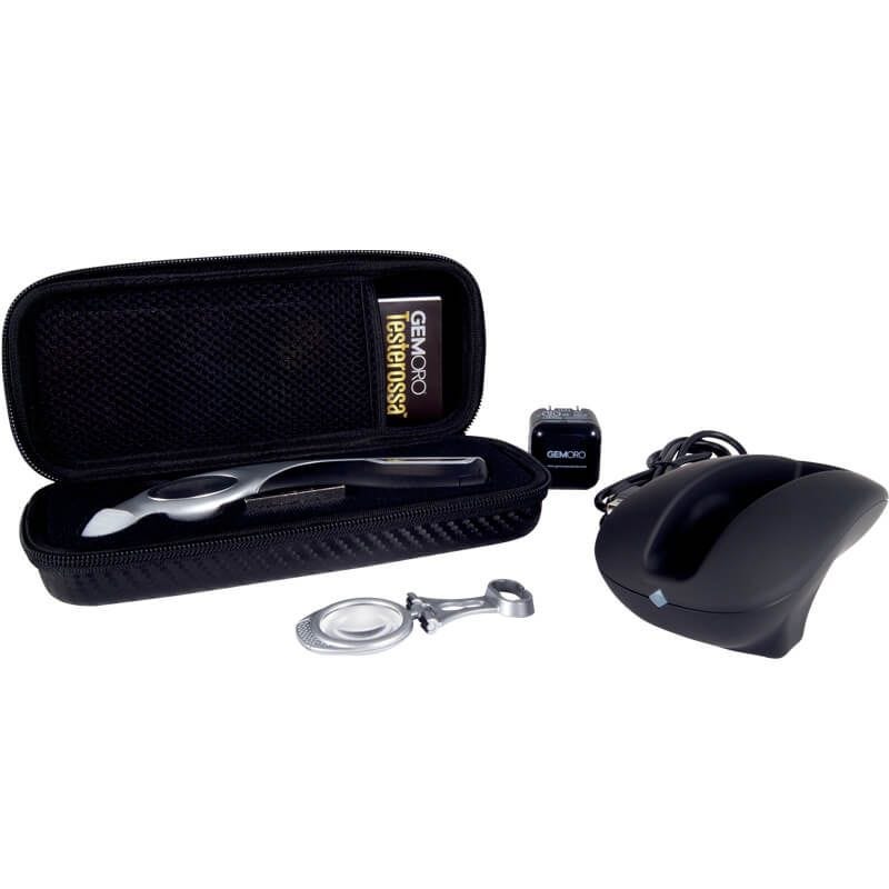 - INCLUDES: Low-profile GemOro UltraDock 3 charging station, adjustable GemOro Test Stone Magnifier attachment and Test Stone Cloth, loose stone holder, multi-voltage 100V-240V AC adapter with micro-USB power cord and a carbon-fiber style carrying case.