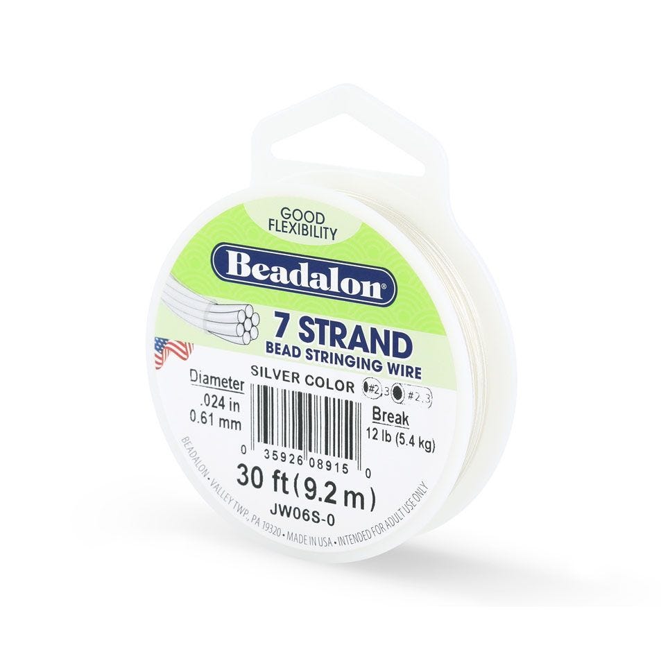 7 Strand Bead Stringing Wire, .020 in / 0.51 mm, Silver Color