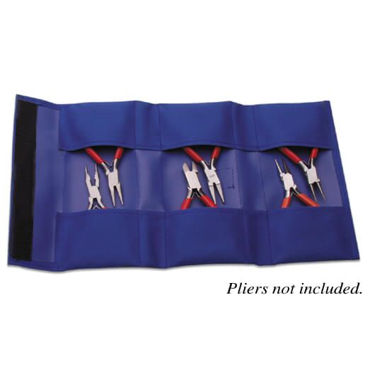 - Made of vinyl backed canvas, this blue pouch holds up to six standard size pliers or cutters. Size is 4" x 8" (10cm x 20cm) when closed, and it features velcro closures to keep everything in order. Perfect for merchandising sets.